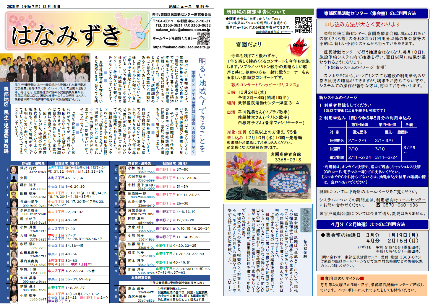 ☆東部区民活動センタ運営委員会 ☆宮園だより ☆宮一寄席 ☆コラム なかま☆編集後記 |